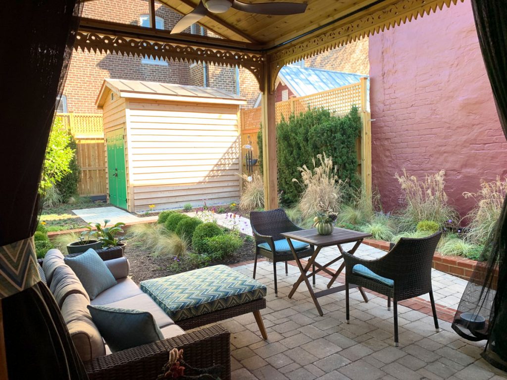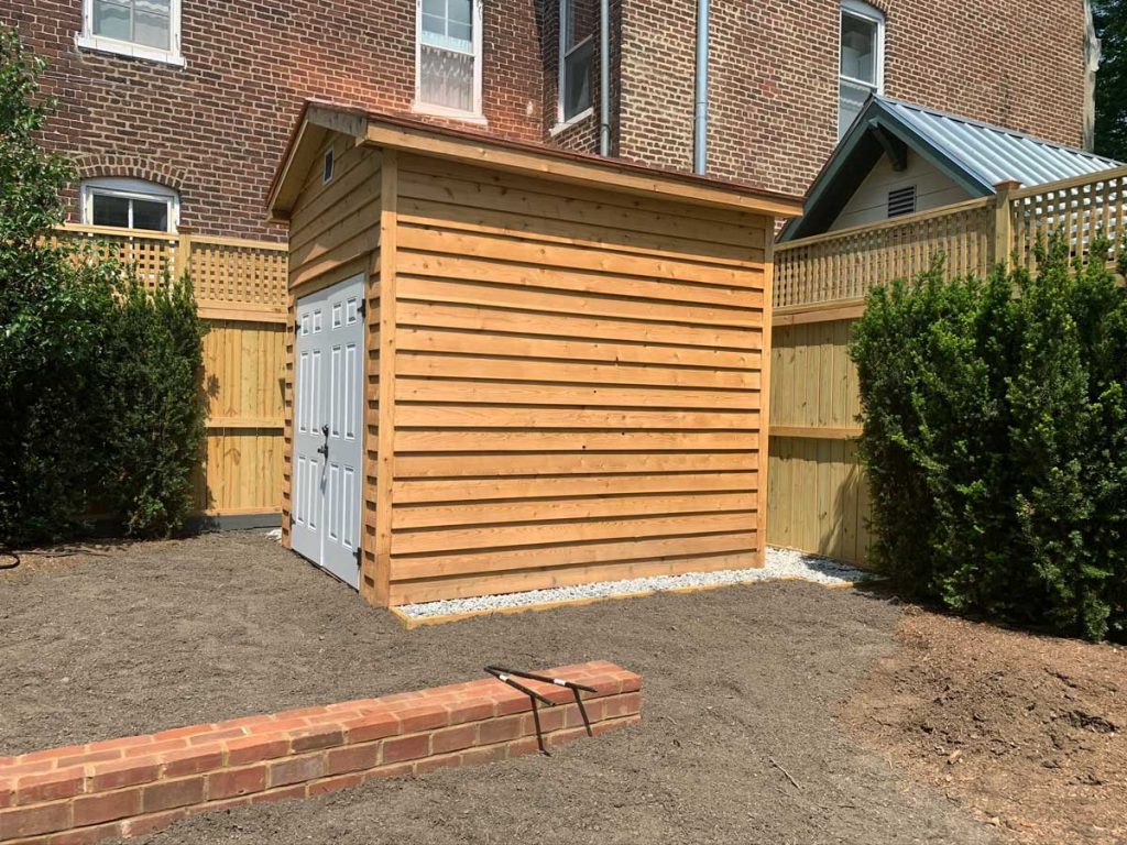 The homeowners and I decided on a ramp over stairs to deal with the elevation change. Partly because the awkward step that was there previously had really aggravated them and if they are using a dolly to load items from the shed, stairs would have been manageable, but still an irritant. Yes, dear readers, all things that bother you should be considered in a functional design.