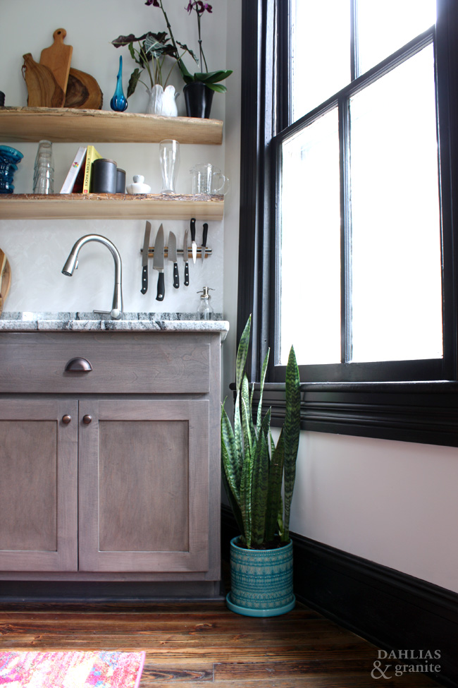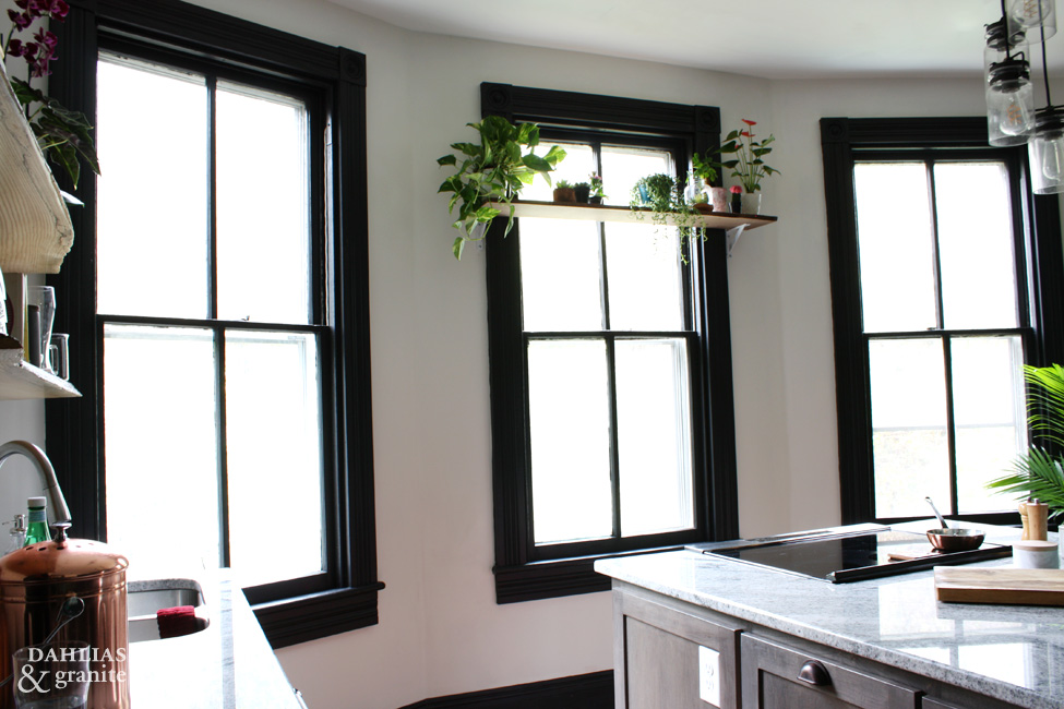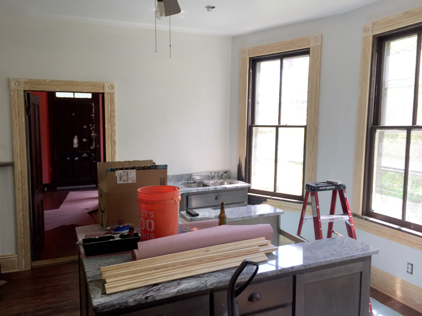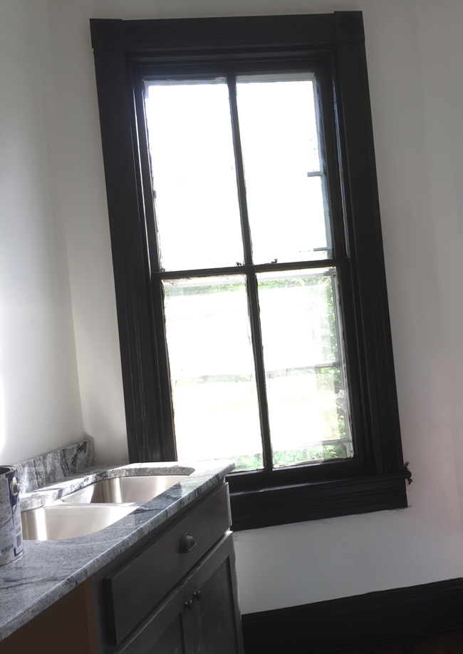 I didn’t have time to paint all the trim before the cabinets came in, so I painted the lower corner by the far left window that would be difficult to paint after the cabinet install.