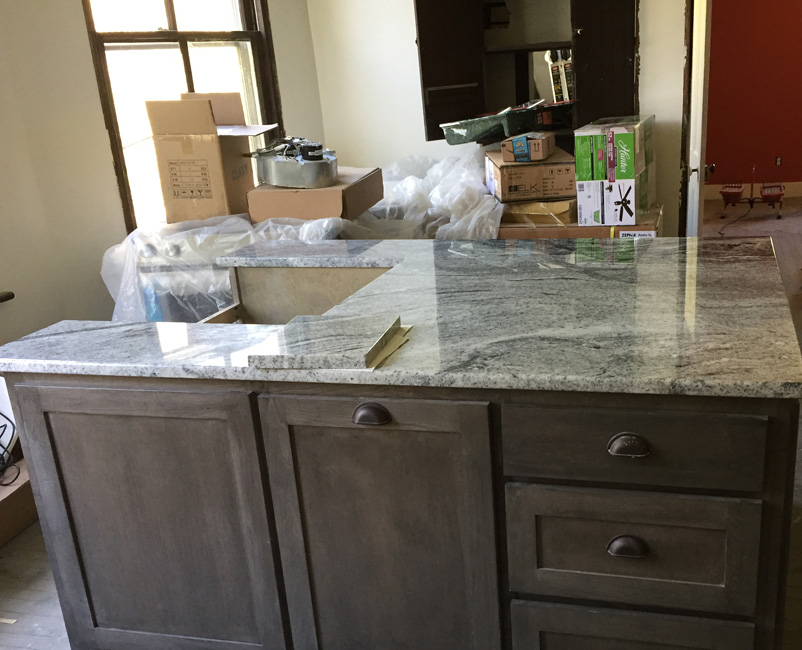 Last week in the One Room Challenge™, the trim had just been installed. This week we had the cabinets installed and the counters put in!