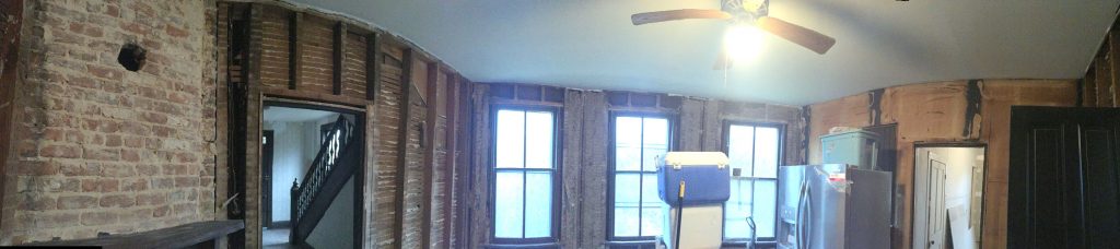 The wood paneling came off first, then the plaster and lath walls. Plaster dust is some of the finest particulate you will ever encounter in a renovation — it travels. It doesn’t stay in the room you’re working in. It finds its way into every other room, settles on every surface, and coats everything in a layer that feels almost silky until you realize it’s been three days and it’s still there.