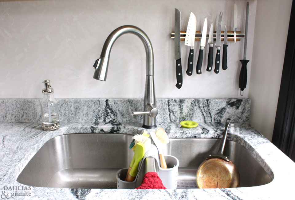 On the counter we have our instant hot water heater, that I would prefer to be over on the dog feeding station. It’s leaking a little so while the new one is on the way, the heater stays on the counter.
