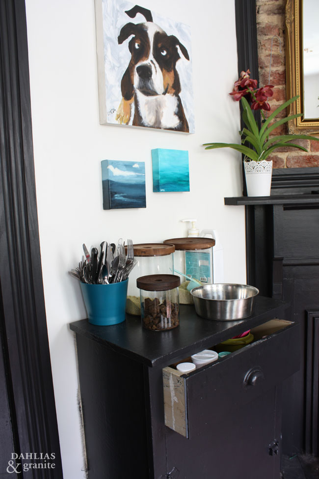 Active dogs = supplements! As already mentioned I can’t stand clutter, so decanting their food into prettier containers and hiding the rest in the drawer does the trick!