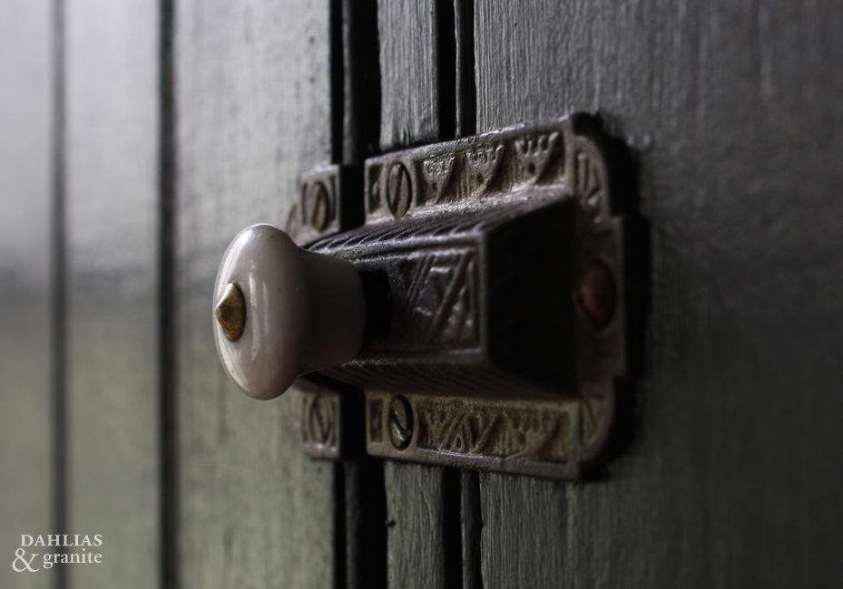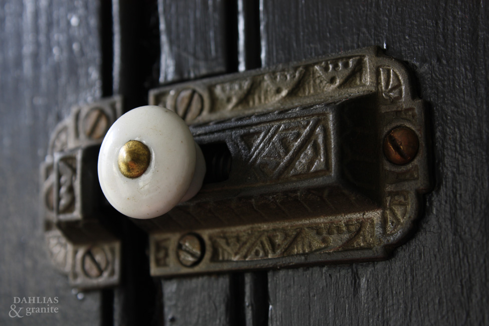 A huge part of the charm of this house is the original features, like this Charles Eastlake latch that is on our pantry doors. We have similar original hardware on our front door and Eastlake inspired fireplaces in other rooms of the home.