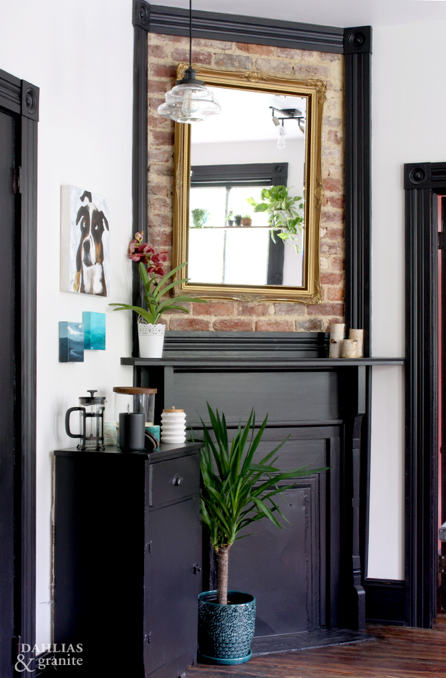 There was also a happy surprise. When the walls opened up above the fireplace mantel, the original brick was there — intact, just waiting. It stayed exposed. It’s still there.