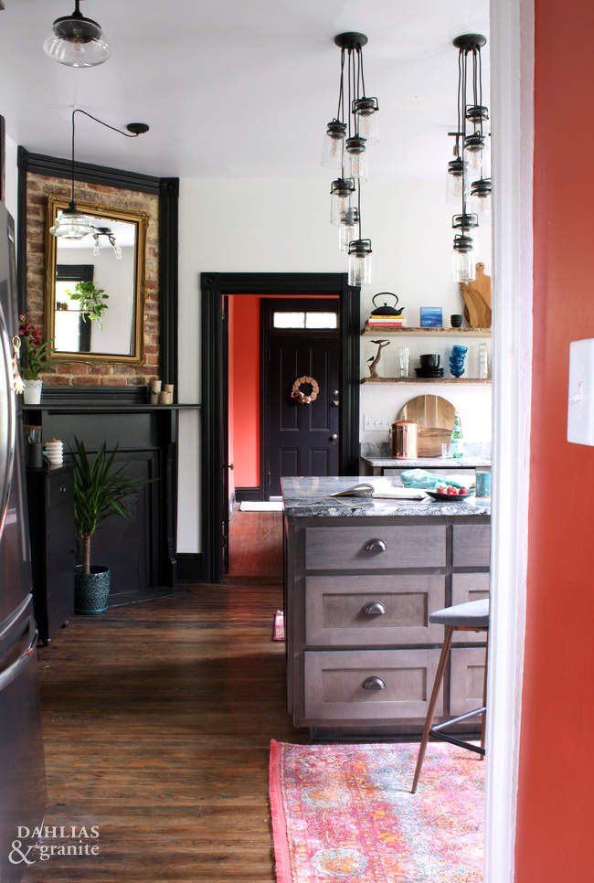 In my initial design I had the fridge facing the front door because we were going to flip the way the doors opened into the living room. We ultimately decided not to go that route and had enough room that the fridge could face the window.