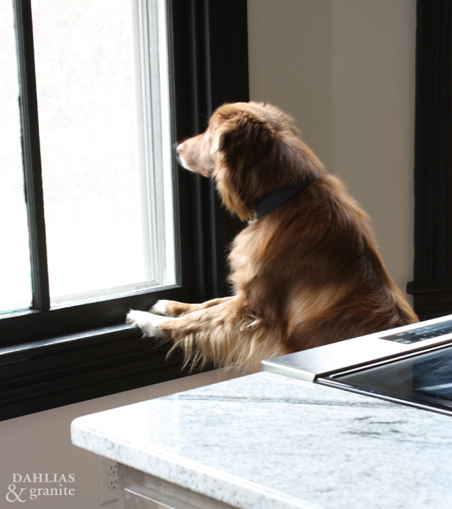 Our dogs are pretty active. O-Ren below loves to hop up on the window sills and catch flies or watch (aka, bark loudly) at the squirrels.