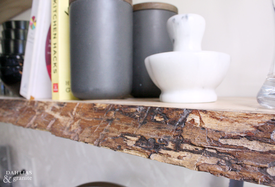 I chose this slab of ash to make the shelves out of because of the worm eaten edges. We have similar worm marks in our floors and carrying this pattern into something new helps keep it in character.