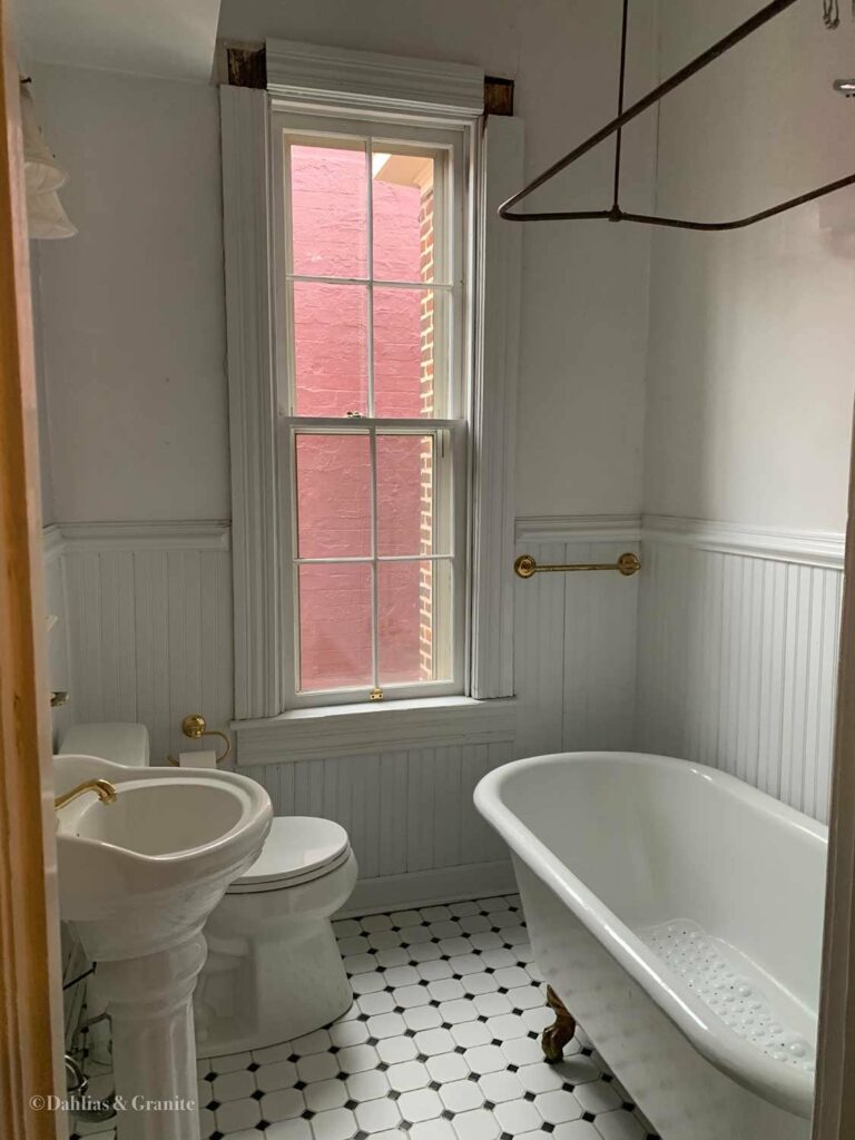 This is a full gut renovation — down to the studs — in a Victorian-era home in Richmond, Virginia. We didn’t move any plumbing. Because we were already opening up the space downstairs, moving things around was on the table — we even looked at pulling the tub in front of the window. In the end we left everything where it was. A freestanding tub in front of a window looks beautiful in photos and is a pain to keep clean in real life. The tub, toilet, and sink stayed put.