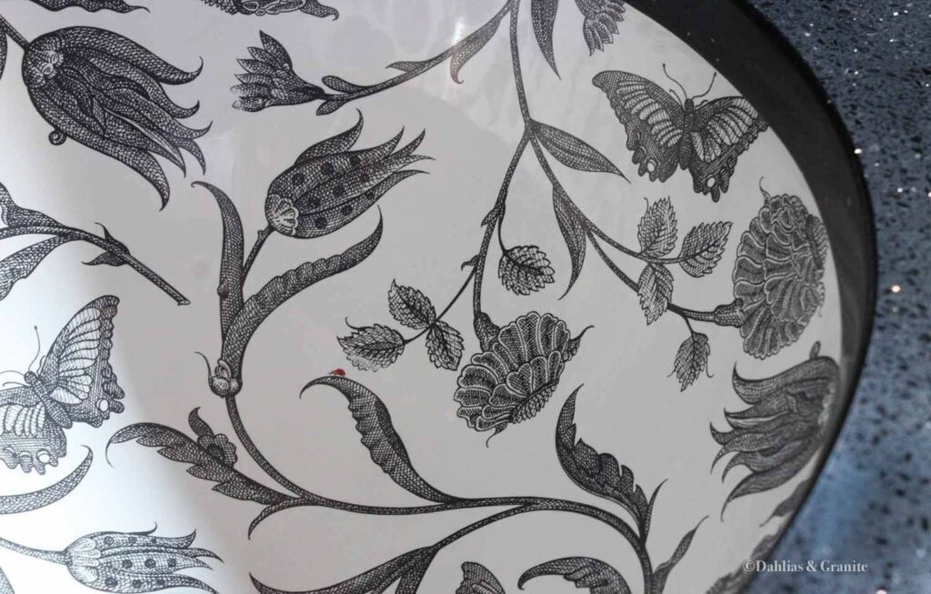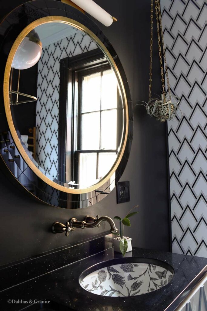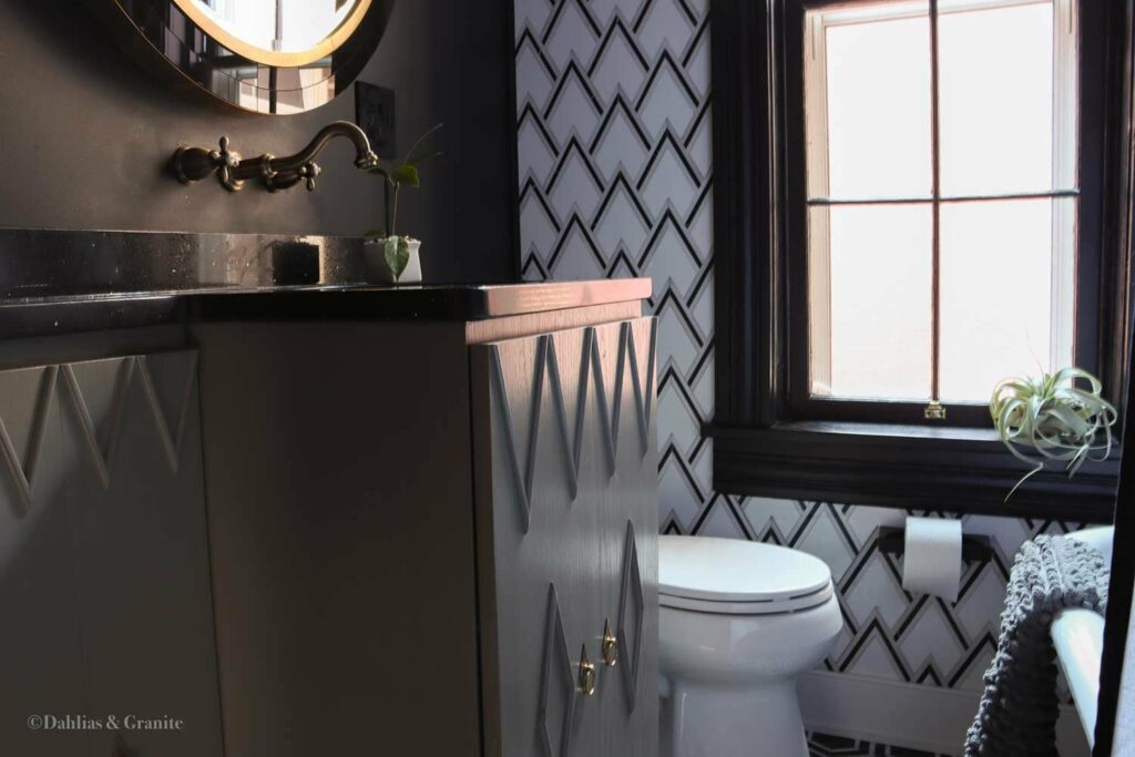 The black and white palette wasn’t a mood board decision — it came from the floor. The original hex tile was already there, already black and white, already saying something. That’s where the direction started.
